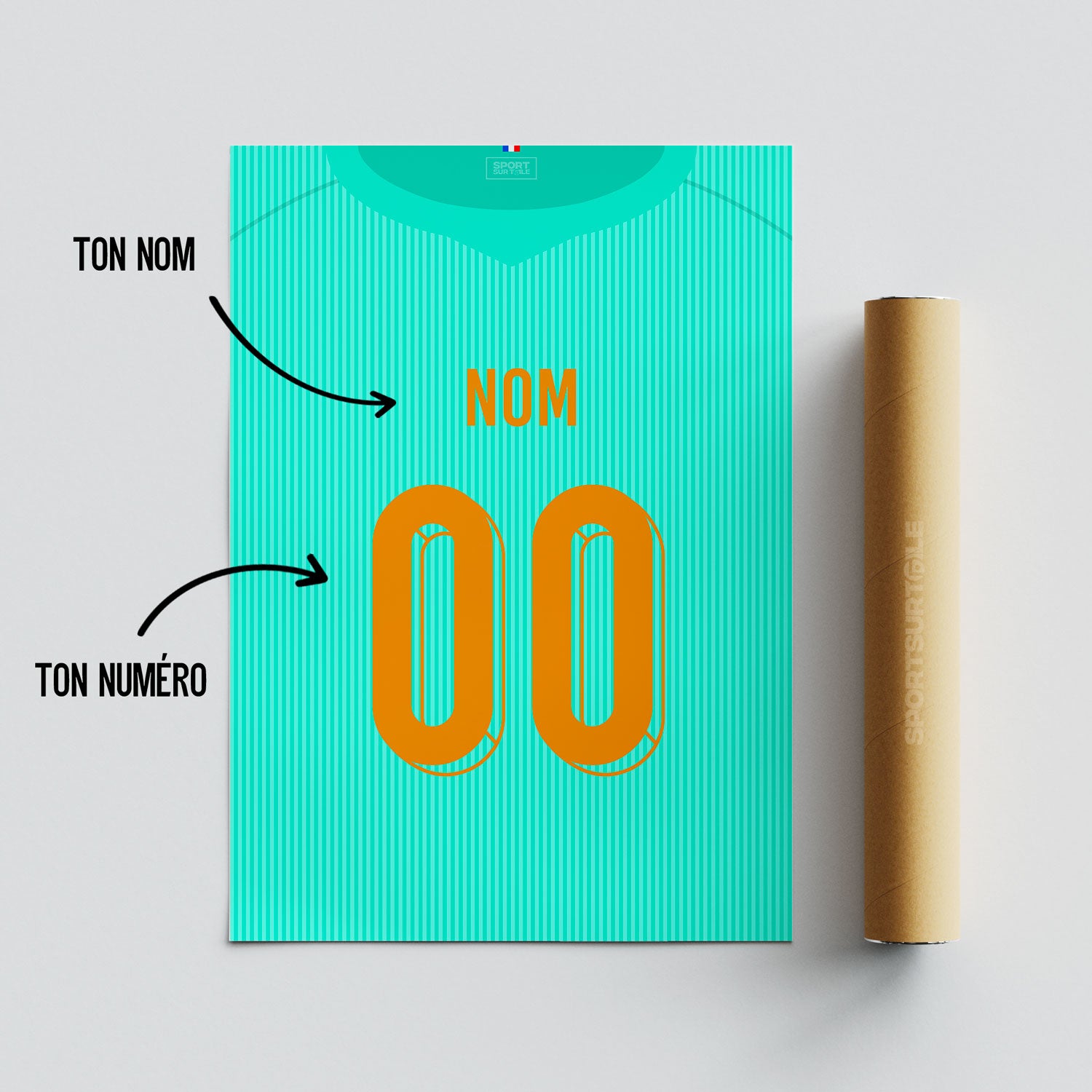 Oui. Vous pouvez personnaliser votre affiche avec le nom et le numéro de votre choix (le vôtre, celui d’un proche ou d’un joueur). Les informations renseignées lors de la commande sont celles utilisées pour la création.