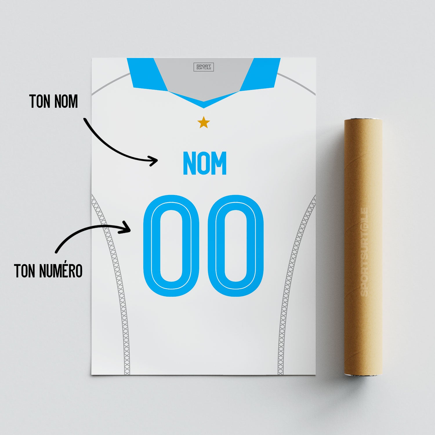 Oui. Vous pouvez personnaliser votre affiche avec le nom et le numéro de votre choix (le vôtre, celui d’un proche ou d’un joueur). Les informations renseignées lors de la commande sont celles utilisées pour la création.